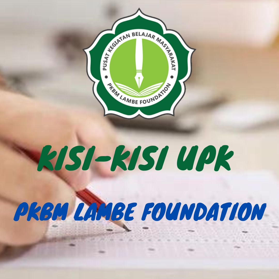 berikut kisi-kisi beserta soal-soal UPK (Ujian Pendidikan Keseteraan) dengan jawaban lengkap tiap tahun PKBM Lambe Foundation. Dibawah ini terdapat link download kisi-kisi dan soal-soal ujian beserta jawaban Tahun-tahun sebelumnya di PKBM Lambe Fondation, Programnya adalah Paket A , Paket B dan Paket C